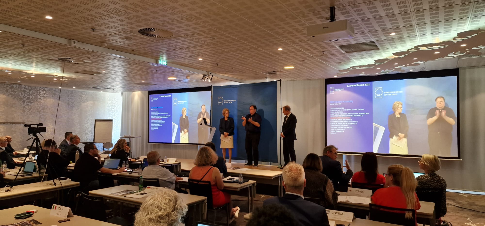 3 June 2022: The EDSO responded to the invitation of the European Union of the Deaf (EUD) and Secretary General Anton Petrič attended their General Assembly which together with a seminar and workshop took place from 26 to 28 May in Marseille (FRA).