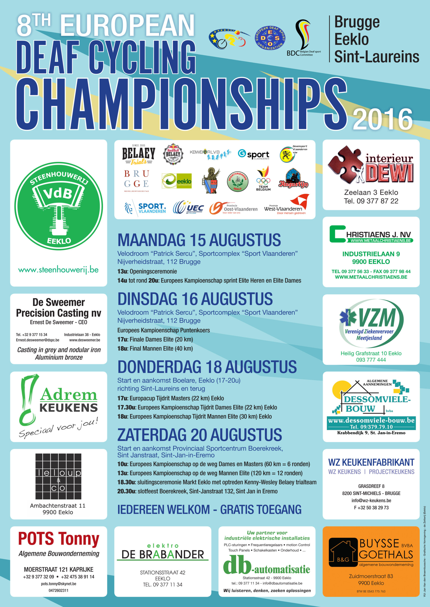 Information Channels: http://www.ecdeafcycling2016.be and https://www.facebook.com/2016ECDeafCycling/