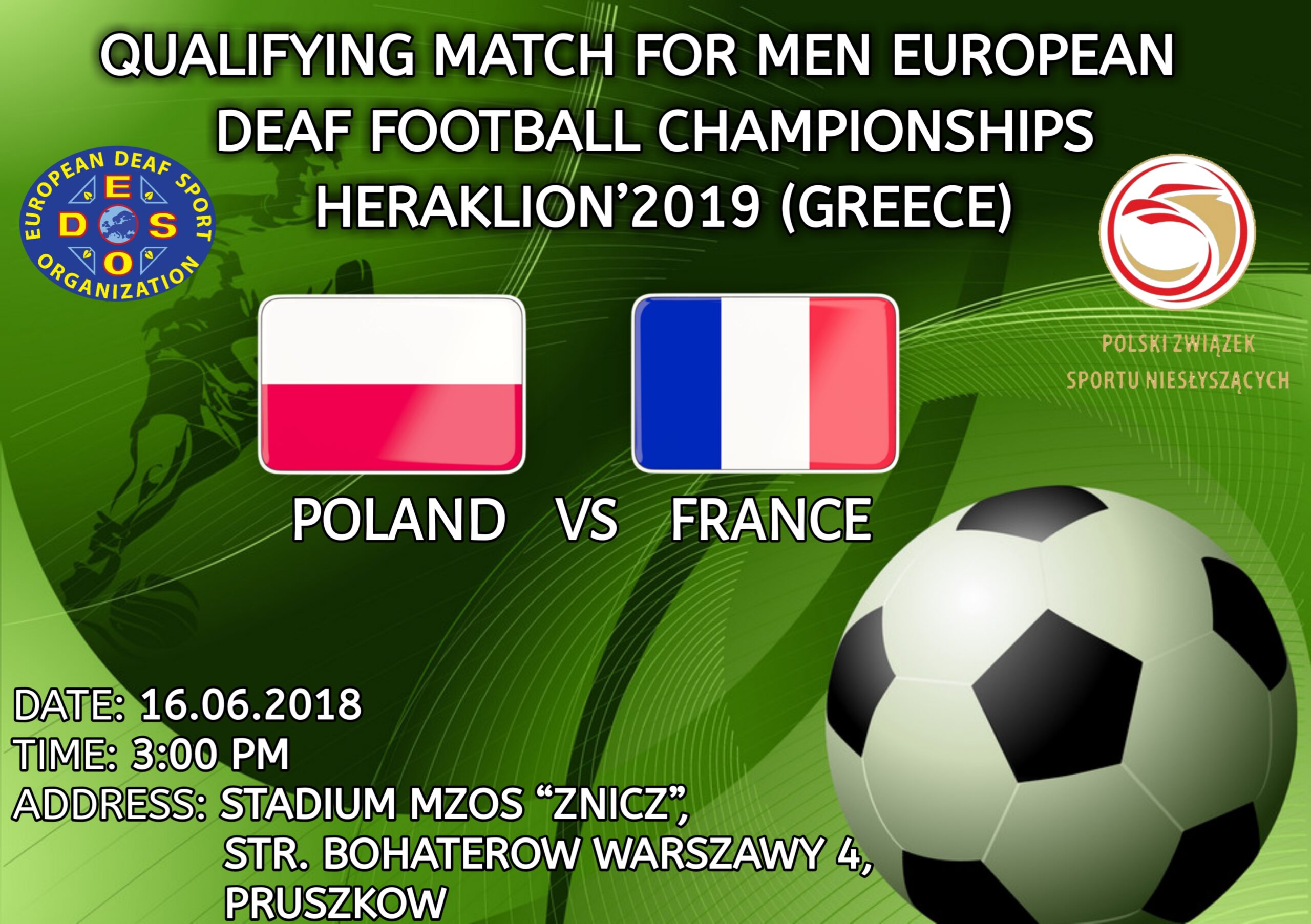Poland vs France match will be held in Warsaw, POL at 15.00 on 16 June.