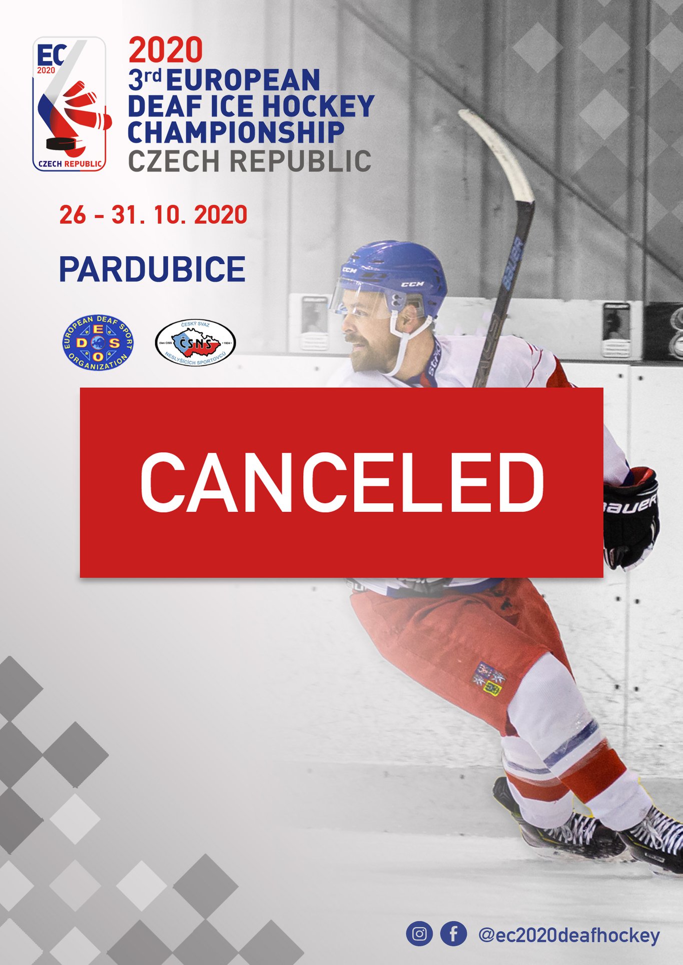 The EDSO TD for Ice Hockey Jaroslav Milich and Czech Deaf Sports Federation Organizing Committee of 2020 European Deaf Ice Hockey Championships have come to the final decision concerning the host of the EDSO Ice Hockey EC from 25 October to 1 November 2020.