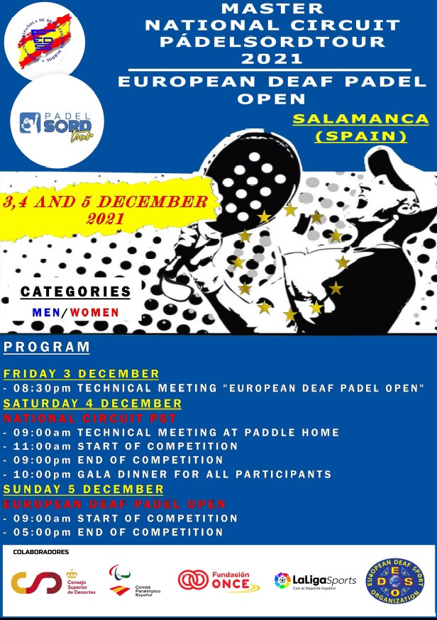 FEDS is pleased to announce the EUROPEAN DEAF PADEL OPEN that will be held on 3-5th December in Salamanca (Spain).